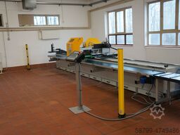 La máquina de serrado puede utilizarse para procesar una amplia variedad de perfiles de aluminio de forma totalmente automática. La máquina consta de un bastidor base estable. Para posicionar la unidad de serrado se utilizan guías rígidas y carros de desplazamiento de precisión. Los accionamientos están equipados con servomotores. Para serrar, la unidad de serrado se desplaza 300 mm hacia delante en el eje Y y puede cortar fácilmente perfiles especiales, paneles o perfiles Item y Bosch. La mesa de apoyo consta de rodillos móviles que se desplazan a la posición correcta en función de la longitud del corte. Además, todos los rodillos están montados sobre rodamientos de rodillos de precisión. La sierra también dispone de una mesa de apoyo estable sobre la que se colocan las piezas de aluminio aserradas. (Opcionalmente, las piezas aserradas también se pueden transportar directamente a través de una cinta transportadora, incluidas las virutas)La máquina está disponible con una longitud de corte de 6.000 mm. Por lo tanto, tiene una longitud total de 7.000 mm. El sistema de aserrado se suministra con un sistema de pulverización de cantidad mínima de 2 canales adecuado. La máquina también se suministra con una hoja de sierra de 400 ó 600 mm.